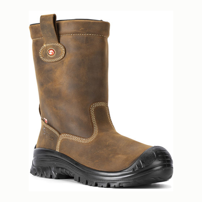 Montana veiligheidslaars met bovenwerk van bruin, gevet nubuckleer en daaronder een waterdicht HDry-membraan. Teenbescherming van CTC composiet en PU/PU loopzool. Deze met wol gevoerde, metaalvrije laars voldoet aan de S3 normering.
