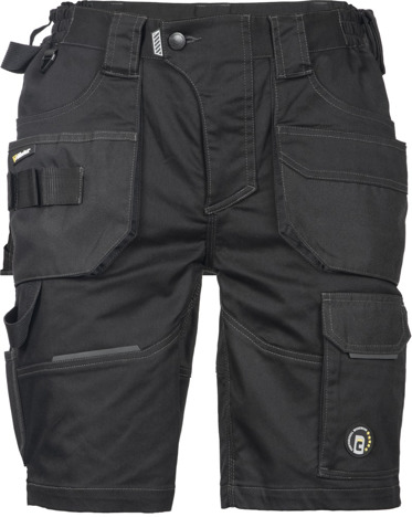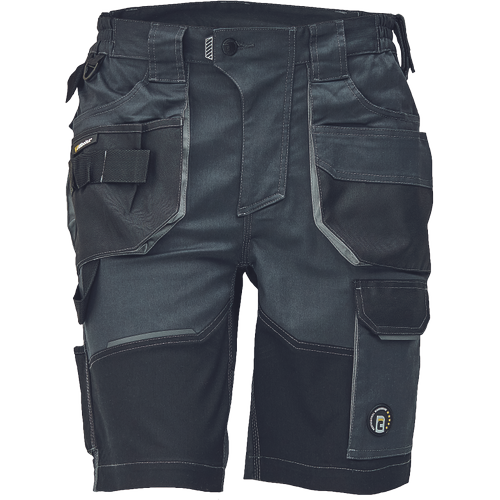 Werkbroek kort met mannelijke pasvorm en elastische taille; innovatieve, elastische Trifibetex stof; duurzaam, drievoudig stiksel bij de benen en het kruis; Oxford 600D versterkte kniedelen met ingang voor kniebeschermers; ruime, multifunctionele voorzakken met gereedschapsriem; reflecterende details; verlengbare broekspijpen. EN ISO 13688